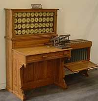 いきなり現われたのは・・。 ・・なんだか良く分からないけど、円盤に数字が書いてあって、パンチしてある紙を入れると集計してくれる ってやつかな・・そんな感じの物です。